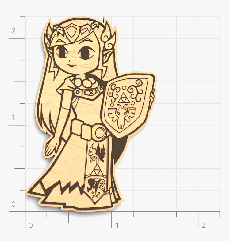 This collectible figure is laser cut from 1/8" finished birch wood. The etching is often painted to add extra contrast to the engraving.