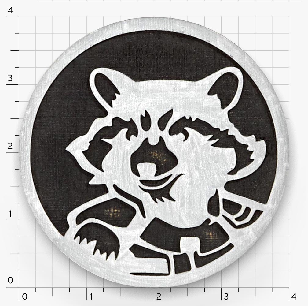 This collectible medallion is laser cut from 1/4" finished birch wood. The background is painted black, while the figure is hand-painted in silver.