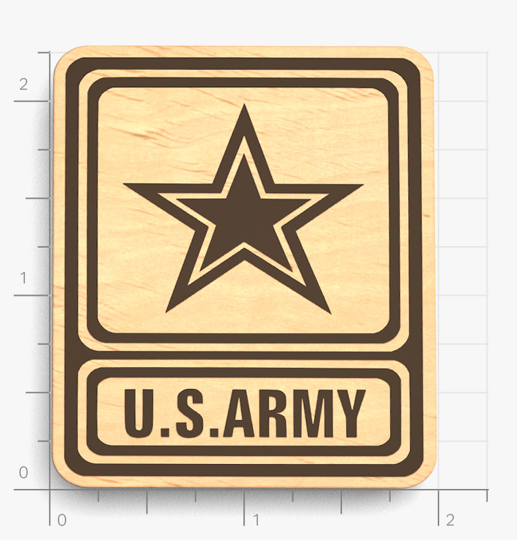 This collectible badge is laser cut from 1/8 or 1/4" finished birch wood. The etching is often painted to add extra contrast to the engraving.