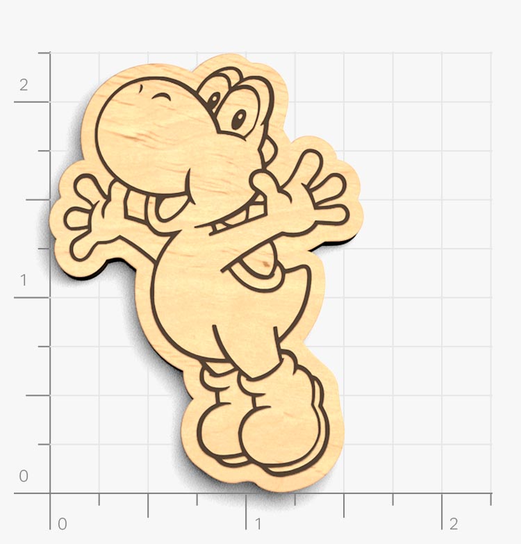 This collectible figure is laser cut from 1/8" finished birch wood. The etching is often painted to add extra contrast to the engraving.