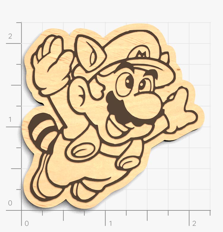 This collectible figure is laser cut from 1/8" finished birch wood. The etching is often painted to add extra contrast to the engraving.